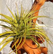 Although not normally cultivated for their flowers, some Tillandsia will bloom on a regular basis. In addition, it is quite common for some species to take on a different leaf colour (usually changing from green to red) when about to flower. When combined with the beautiful grapewood these living natural art pieces always get noticed. Over time they just get more interesting as the plants begin to spread with new pups.